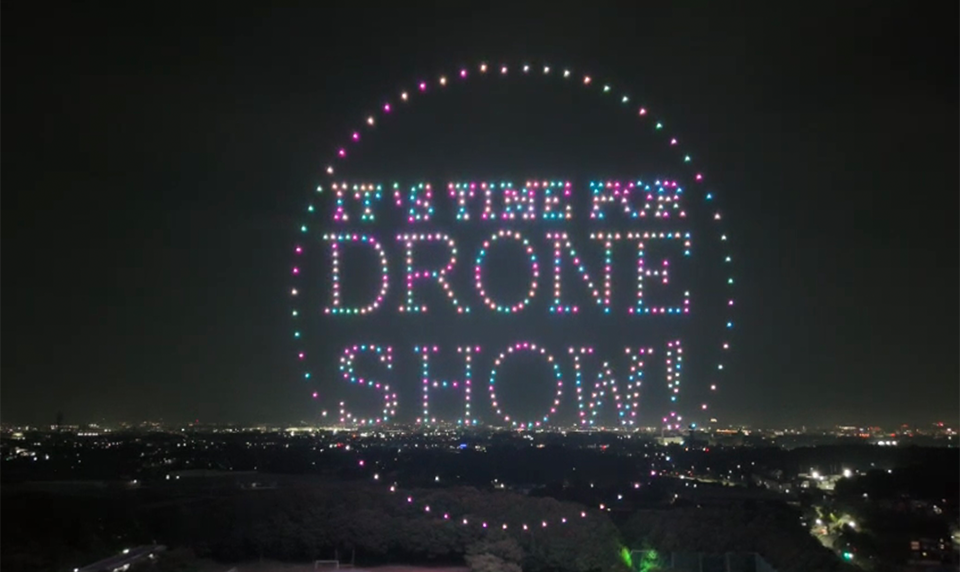 ドローンショーはLEDが搭載されたドローン群をプログラム操作して夜空を彩る演出です。
